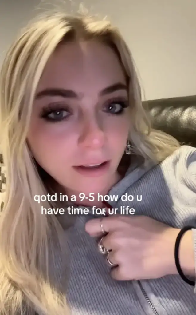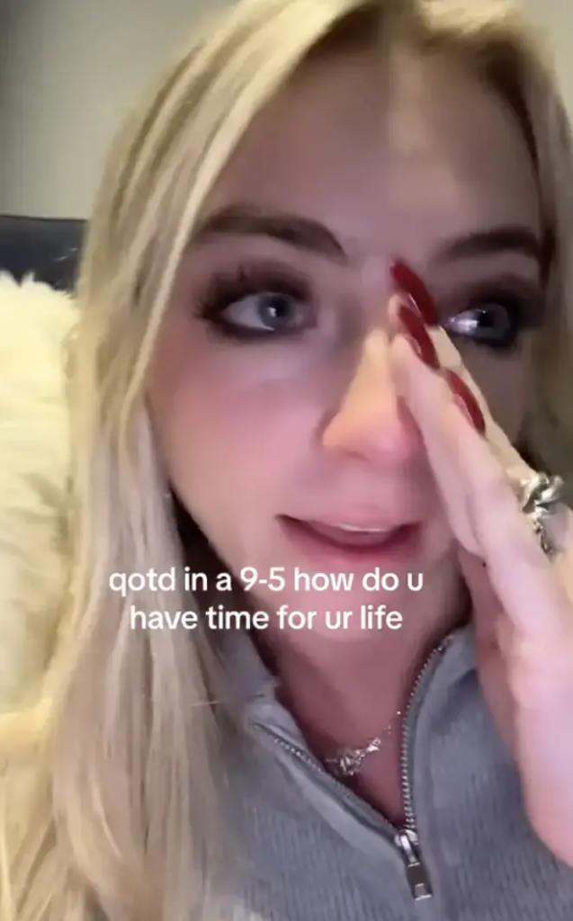 The video’s overlay text read: “QOTD (question of the day) in a 9-5 how do you have time for your life.”